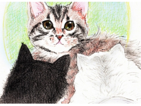 イラストはうちの猫たちが「こねこ」を見ているところ。出演したすべての猫たちが「最優秀演技賞」レベルの名演技でした。小津安二郎のサイレント時代の作品とも共通するところを感じます。人間が社会で生きる姿がちゃんと描かれているからだと思うんです。猫好きだけでなく、小津好きにも見て欲しいです。
