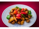 トンビと呼ばれるイカの口と、フクロタケ、ピーマンといった野菜が入った炒め料理でしょうゆベースの甘辛い味です。イカトンビのこりこり食感もいいし、何よりガツンとした濃い味つけが好き。名古屋は味の濃い食べものが多くて、そんな食文化で育ったので薄味だと物足りない。家族それぞれが好きな料理を頼んで分けますが、僕と弟は必ず、イカのくちと野菜の炒めを注文します。