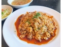 小学生の頃から通っている大好きなお店です。ピラフと言えばパラパラご飯のイメージですが、これはしっとり系。今まで食べたことのないピラフでしたね。軟らかいサイコロステーキがゴロゴロと入っていて、食べ盛りの頃でも満足のボリューム。豪華なステーキ肉と芳醇(ほうじゅん)なデミグラスソース。子どもながら少し大人になった気分を味わっていました。セットのサラダにかかっている自家製ドレッシングも激ウマ。当時は野菜が苦手でしたが、このドレッシングならバクバク食べられて、家族の分も全部平らげるぐらいでした。