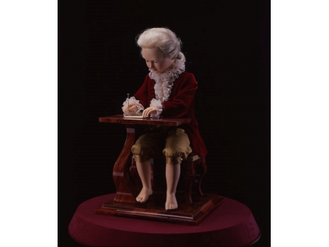 ロココ調の装いをした人形が、スラスラと犬やルイ15世の横顔を描いていく。「画家」と名付けられた西洋の自動からくり人形「オートマタ」は、スイスの作家、フランソワ・ジュノ氏の作品です。18世紀欧州で高級時計でも名をはせたジャケ・ドロー工房が1774年に発表した傑作オートマタを、当館が依頼してリメイクしてもらいました。