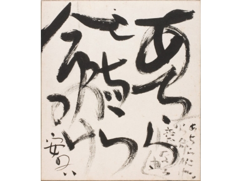 坂口安吾(1906~55)は、色紙からはみ出しそうな文字でそう書きました。開催中の「坂口安吾展」のサブタイトルにいただいた文言で、この色紙を展示の冒頭に据えています。「堕落論」「桜の森の満開の下」などで知られる無頼派作家。没後70年の節目の今、全力疾走の人生の「あちらこちら」を展観しています。