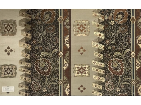 丸帯地試織「フランス唐花」(右、部分) 明治時代 川島織物製