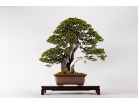 盆栽で難しいのは現状の姿のまま維持すること。推定樹齢160年、大きいもので30メートルにもなる木を95センチにとどめる技術は、盆栽技師の技量が試されます。