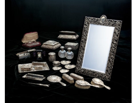 「あやめ文銀製化粧セット」 ゴールドスミス・アンド・シルバースミス社 1903~07年