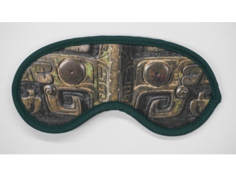 正面をじっと見つめる、まんまるな目の正体は。今年4月にオープンしたミュージアムショップでは、大きな目と鋭い爪が特徴的な中国古代の伝説上の怪物「饕餮(とうてつ)」の文様のアイマスク(1500円)を販売中だ。