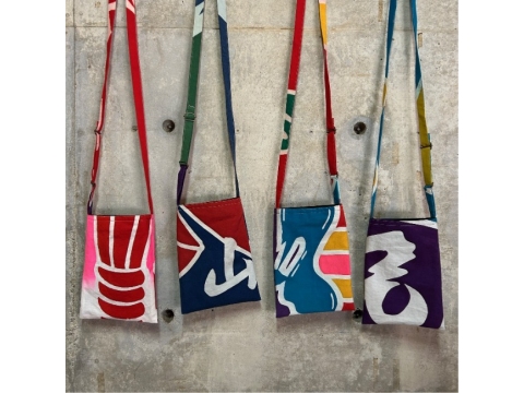 帰港する船にはためく大漁旗。漁業が盛んな三重県鳥羽市の市立海の博物館では、役目を終えた大漁旗を譲り受けて「大漁旗サコッシュ」(2540円)を手作りしている。