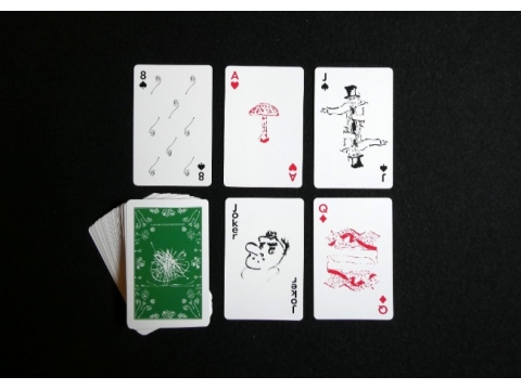 熊楠自筆の絵を用い、スペードのカードに粘菌のクモノスホコリ、背面に熊楠の思想を表した「南方マンダラ」などをデザインした。ジョーカーの天狗(てんぐ)は、鼻が高く「てんぎゃん(天狗さん)」のあだ名を好んだ熊楠のサインとか。「愛猫や在英時代の生活を描いた絵もあしらい、熊楠の魅力を詰め込みました」と館の担当者。額装してユニークな絵柄を楽しんでも。
