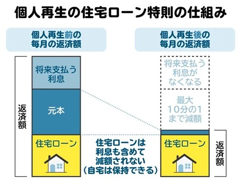 しかし、住宅ローン特則を適用することができれば、住宅ローンだけは特別に従来どおり返済を継続することが認められます。これによって債権者から抵当権を行使されずに済み、自宅を残すことができます。つまり、住宅ローンは減らせないものの住宅を残しつつ、他の借金のみを減額することができるということです。