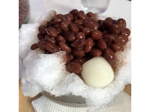 沖縄のぜんざいの誕生には様々な説があるらしいが、そもそもこの地には古くから、緑豆や小豆を黒糖で煮た行事食があるという。第二次世界大戦後、金時豆の流通が増えた際、比較的廉価なこの豆を、黒糖で煮ることが普及。同時期に冷凍庫が一般的に用いられるようになり始めたこともあり、かき氷と金時豆の甘煮を合わせる食べ方が定着したのでは――というのが、よく支持されている説とうかがった。となると沖縄のぜんざいは、この地の長い伝統と戦後の生活の変化が交じり合い、更にそこに南国の炒りつけるような暑さの中、ひと時の涼を求めずにはいられない人間の思いが重なって誕生した甘味。昔からの風土という横軸、生活様式の推移という時間軸に人間の精神性が加わり、沖縄という地を三次元に体現している――と考えると、ふんわりと優しい味わいに更なる奥行きが加わるではないか。