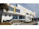 レリーフで彩られた白亜の建物が、衣笠山を背景に映える。