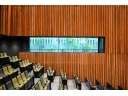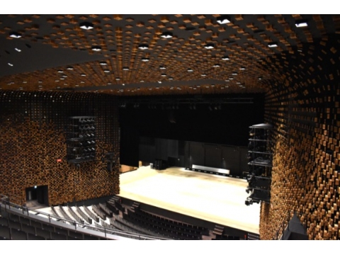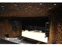音響効果を計算して、壁や天井に木のキューブがちりばめられた大ホール