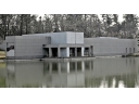 建築が進む現場にも夜行列車で幾度も通い、細部に目配りをした。前面には人工池を配し、背景には自然林の丘。土門が捉えた日本文化のありようを表そうと努めた。また、外光で作品を傷めるのを避けるため、展示室は丘に食い込むかたちにして、ほの暗い空間とした。