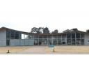 屋根は、両側の高い壁から直径10センチの丸い鋼材を橋のように渡して支えられ、鋼材自身の重さによって中央がたわんで下がるように設計されている。鋼材は60センチ間隔で28本。地震のときに大きく揺れないよう上下で木材を斜めに組んで固定され、その上にステンレス鋼板で屋根が形づくられている。