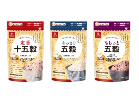 はくばくが、おかずとの相性を考えて開発した雑穀「おこめにプラス」シリーズの3種(いずれも240g、486円)を12人に。