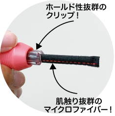 耳穴の壁面に沿わせて、クロスのふき取り掃除のように耳垢をぬぐいとる 。ソフトな肌触りのマイクロファイバー製耳かき。
