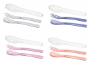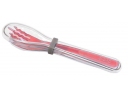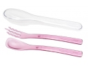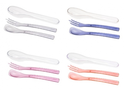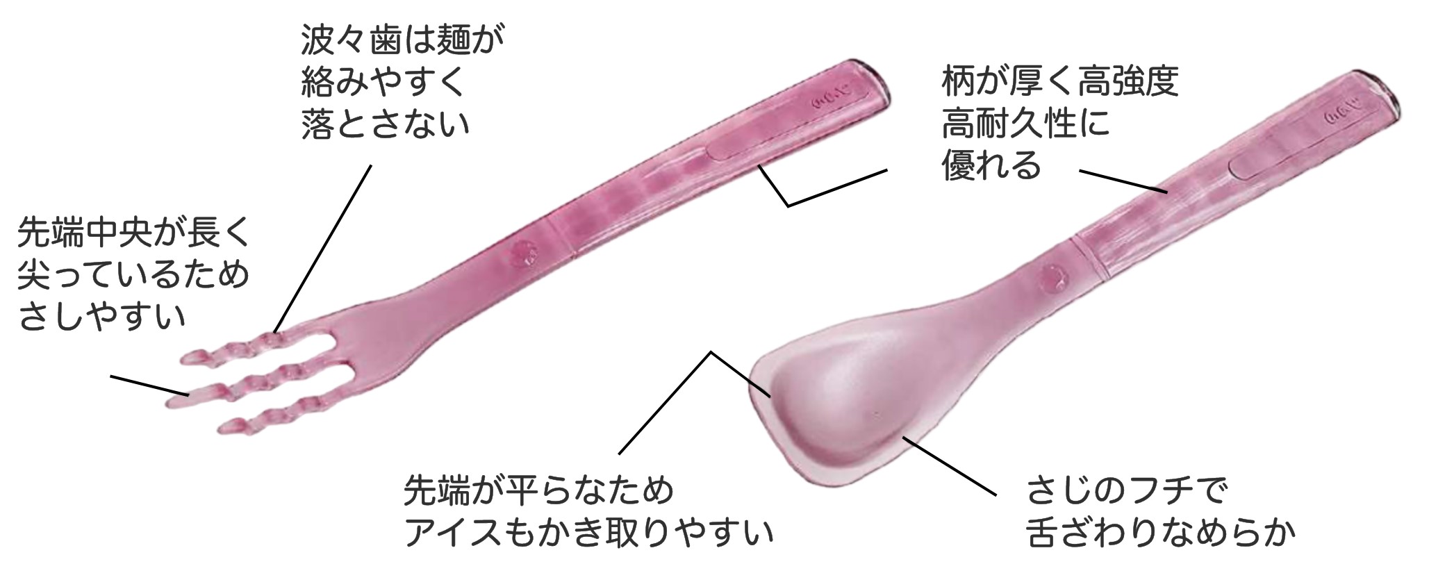 丈夫なトライタン樹脂製のスプーンとフォークのセット。持ち運べに便利なケース付き。トライタンならではのガラスのように透き通る質感。19センチのロングサイズで、底の深いパフェなども食べやすい。