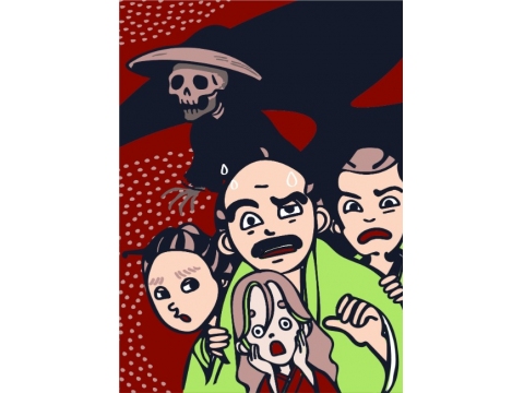 岸野幸正演出・出演。小山茉美、関俊彦、山崎和佳奈ら出演。少女の生霊と出会った源五郎は、彼女を死に神から救うため、女房や幽霊とともに死に神に立ち向かう=写真は資料。