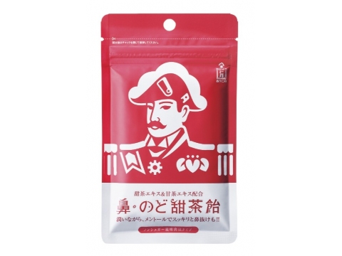 ユーカリ、ペパーミントの香料を、継ぎ目のないシームレスカプセルに閉じ込めてあめのなかに練り込んだ「鼻・のど甜茶飴(てんちゃあめ)」=写真=は、メントールの強い刺激が鼻の通りをよくし、のどをすっきりとさせるという。