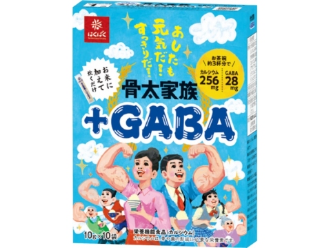 大麦の粒から特有の黒い線(黒条線)を取り除き、サトウキビや貝殻、トウモロコシ由来のカルシウムでコーティングした「骨太家族」に、GABAを加えた栄養機能食品。