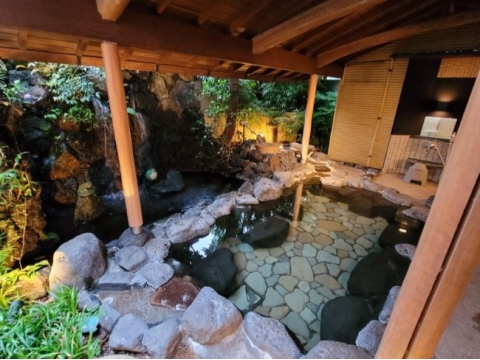 箱根湯本駅から徒歩約8分。須雲川沿いに立地し、箱根外輪山の塔ノ峰を望めるアットホームな宿。岩壁から滝が流れ落ちる貸し切り露天風呂で、源泉掛け流しの湯を堪能。夕食は小田原漁港から仕入れた新鮮な海の幸を使った懐石料理。