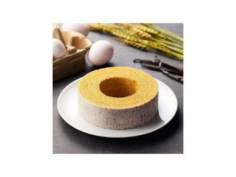 バウムクーヘンに自然な甘さと深い味わいをくわえる新鮮な卵は、国産鶏卵のみを使用。深いコクと香りのフランス産の発酵バターや北海道産の上質な生クリームを使用。素材にこだわり、しっとりと一体感のある仕上がりで、なめらかな口どけ。