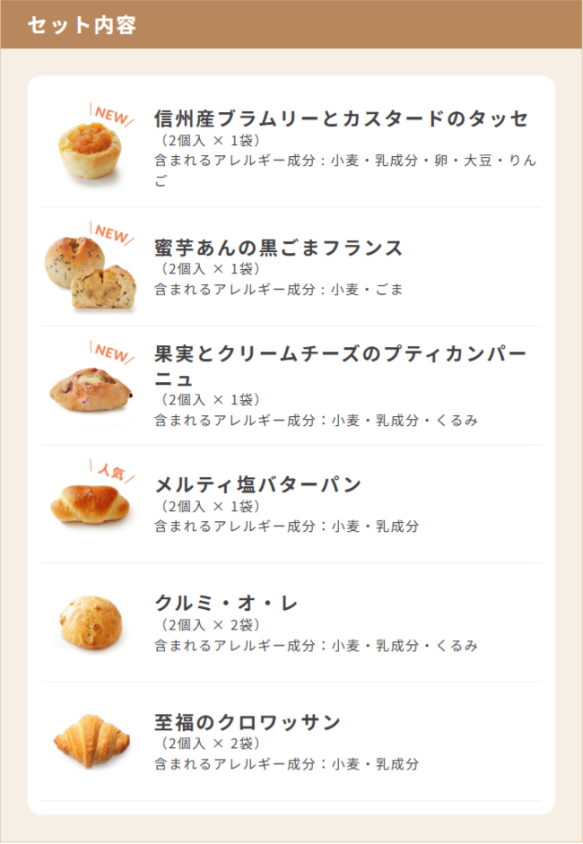 6種16個のスイーツパンを詰め合わせた「ハーベストギフト」