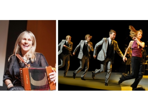 アイルランドのアコーディオン奏者、シャロン・シャノン=写真左=、ダンサーのザ・ステップクルー・トップ3withダン・ステイシー=同右=らが出演し、ケルト音楽でクリスマスを祝うコンサート。
