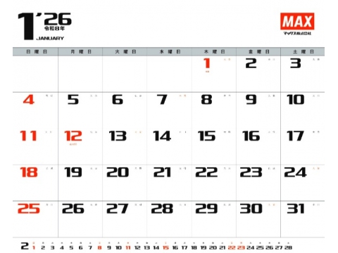 マックスが、壁掛けの「マックス カレンダー」(縦40×横46.5cm、非売品)を50人に。
