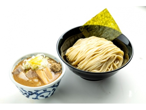 スープは、鶏ガラと豚ガラを長時間かき混ぜながら炊きあげ、大量の煮干しを加えて動物系と魚介系のうまみが重なり合った、濃厚な味わいに仕上げている。また麺は国産小麦を数種類ブレンドした極太麺を使用。卵を練り込むことで、コシの強さと香りにこだわった麺となっている。