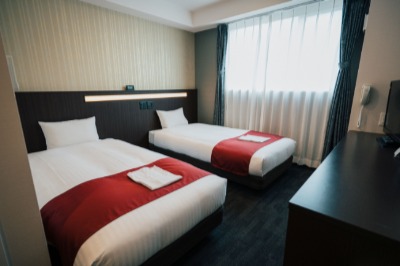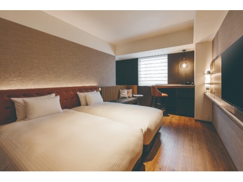 羽田空港第3ターミナルから1駅の天空橋駅から徒歩約1分とビジネスや観光に便利。落ち着いた色合いのスタンダードツイン=写真=に宿泊。滑走路に離着陸する飛行機を屋上展望デッキから楽しむ。朝食は和洋食やアジア各国の日替わり麺など約50種のビュッフェ。