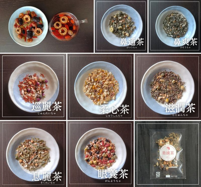 なつめ・竜眼肉・クコの実・桑の実・グリーンレーズンなどの自然な甘みをベースに、山査子(サンザシ)の酸味がアクセントとなった、甘酸っぱさが特徴の薬膳茶。