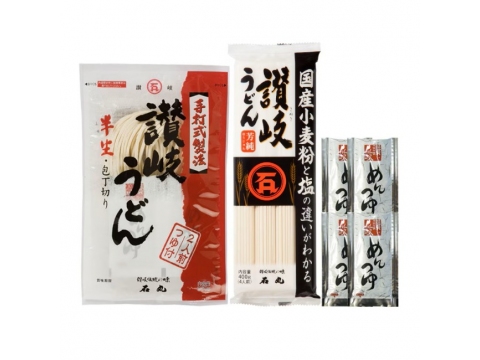 石丸製麺が、国産小麦と赤穂の天塩を使用した「乾麺」と、讃岐伝統の手打ち式製法で仕上げた「半生うどん」と、「めんつゆ」のセット(6人前、1080円)を、15人に。