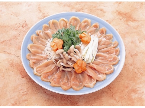 鶏肉特有の臭みやクセがほとんどなく、良質で歯切れのいいシャキッとした食感を、しゃぶしゃぶで味わえる。