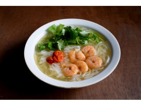 タイ料理のトムヤムクンをオマージュしたオリジナルメニュー「ノトムヤムクン」。ナンプラーの代わりに「いしり(石川県能登半島に古くから伝わる魚醤)」を使い、真空高圧調理したエビオイルと合わせた、子供から大人まで楽しめる優しいスープ。オリーブオイルとともに真空高圧調理をしたエビはふわふわの食感だという。