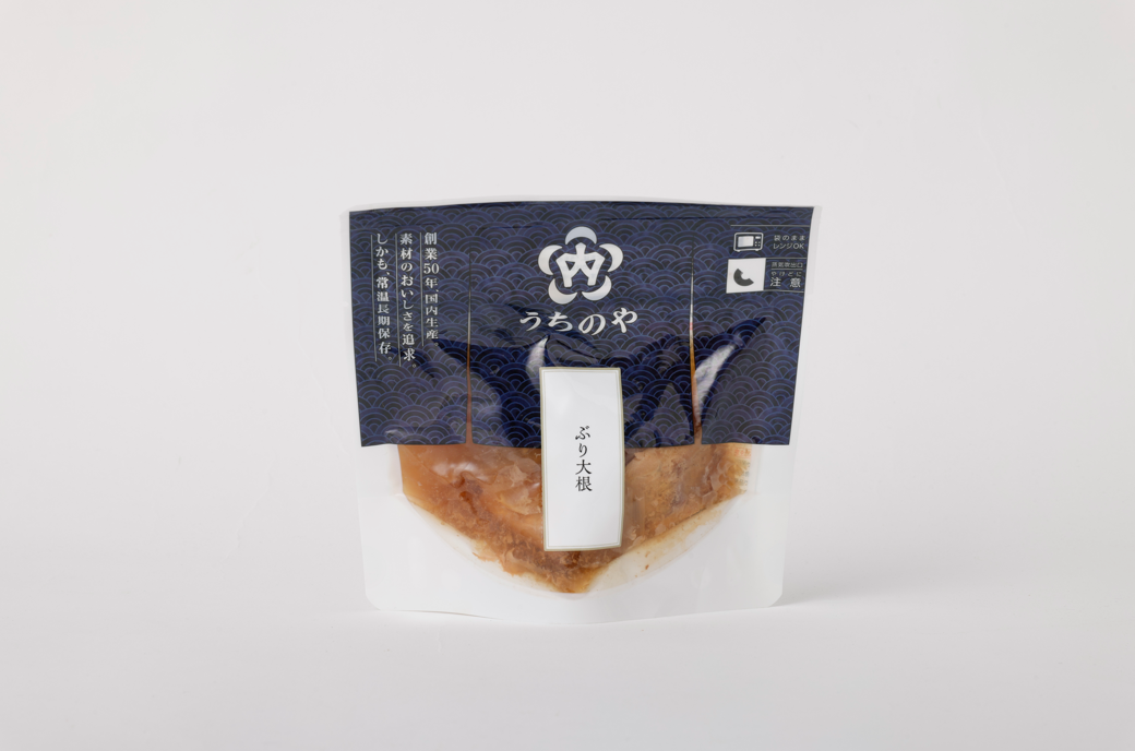 家庭の味を気軽に楽しめる総菜のぶり大根。生姜風味の甘辛い煮汁がぶりと大根にたっぷりと染み込んだ一品。賞味期限は製造より2年。