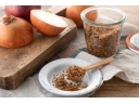 「タマネギぐるりこ」に、コリアンダー、クミン、カスリメティなど10種以上のスパイスをブレンドした「旨辛エスニックスパイス」。フライドガーリックや干しホタテ貝、椎茸のうまみを掛け合わせ、深みのある「旨辛」を実現。サクサクとした食感で、チキンなどの肉料理のスパイスや、七味唐辛子の代わりにうどんやそばのアクセントなど、振りかけるだけでいつもの一品が「エスニックなごちそう」に変身。