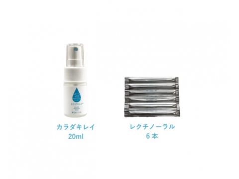 肌(顔・体・頭皮)の洗浄保湿ローション「カラダキレイ」と、口腔ケア(歯・歯茎)を清潔に保つ「レクチノーラル」のセット。