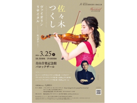 2024年第75回プラハの春国際音楽コンクールのバイオリン部門にて日本人としては2人目となる第1位を受賞した新進気鋭のバイオリニスト・佐々木つくしによるソロリサイタル。ピアノは「葵トリオ」として第67回ミュンヘン国際音楽コンクールピアノ三重奏部門で日本人初の優勝を果たしたピアニスト・秋元孝介。