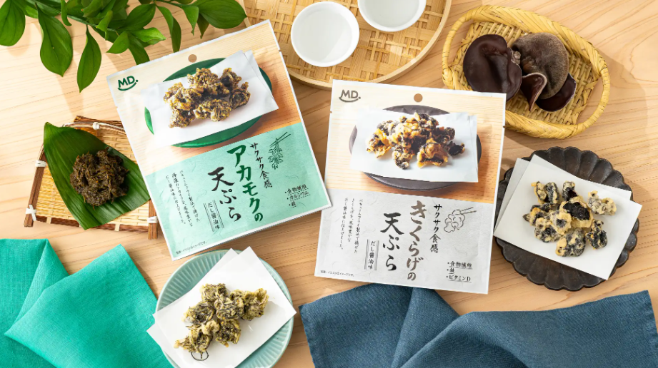 「海のスーパーフード」と言われるアカモク。食物繊維・カルシウム・鉄をたっぷり含むほか、不足しがちな栄養素のマグネシウムも含有。不足しがちな栄養素を、サクサクとした食感を楽しみながら手軽に取り入れられる。素材の味わいを引き立てるだし醤油味に仕上げた。