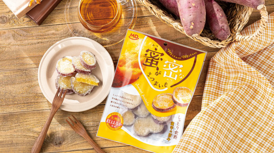 九州産さつまいもの紅はるかと砂糖のみで作ったさつまいも菓子。輪切りの紅はるかを、本来、炊き製法で作るところを蒸し製法にし、独自開発の蒸し釜で蒸し上げることで素材本来の甘みと風味を引き出し、濃密な味わいに仕上げた。製造過程では食品添加物は使用していない。