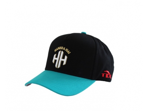 「羽田盃キャップ」は、普段のカジュアルファッションにも自然になじむスタイリッシュなデザイン。シックなブラックに、鮮やかなティール(青緑)を合わせたツートンカラー。「TCK(東京シティ競馬)」の刺しゅうロゴ入り。綿100%。