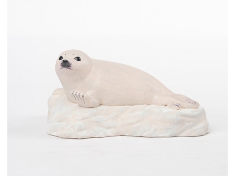 原型制作は仏像の制作や修復を手がける仏師の酒井豪。同社の「木彫りハイブリッド製法」を用い、忠実に再現。流氷に横たわり、つぶらな瞳の愛くるしい造形が魅力。