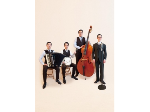唄(うた)、アコーディオン、ウッドベース、バンジョーで構成され、4人兄弟で日本の歌謡曲を歌う東京大衆歌謡楽団=写真=のコンサート。「東京ラプソディ」「あゝ上野駅」「憧れのハワイ航路」などを演奏予定。