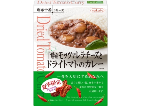 nakatoが、4月15日に発売した夏季限定商品「麻布十番シリーズ 十勝産モッツァレラチーズとドライトマトのカレー」(180g、918円)を30人に。