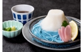 青い麺に、大根おろしをトッピングすると雪化粧した富士山に